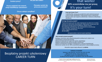 Trwa rekrutacja do projektu Career Turn – bezpłatnego wsparcia zawodowego, realizowanego przez Fundację Rozwoju Kwalifikacji STELLA VIRIUM oraz firmę UBS, o którym pisałam jakiś czas temu. Zostały ostatnie wolne miejsca! Projekt kierowany... Read More | Share it now!